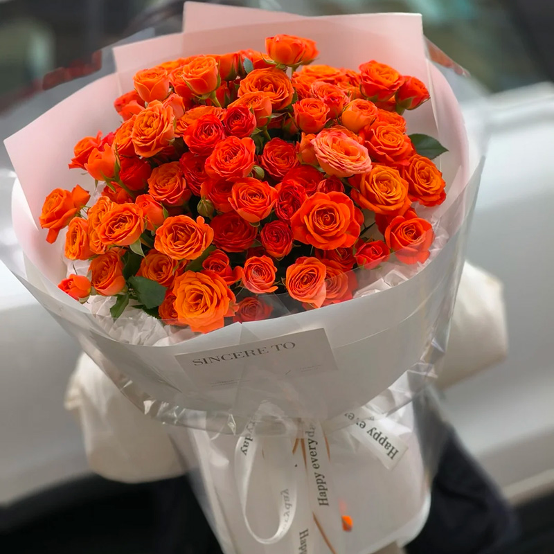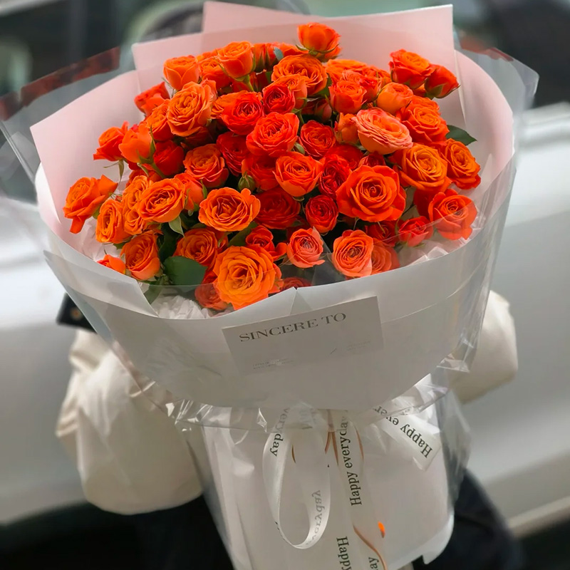 花 材:精选19枝多头橙色芭比(珍贵稀少花材,请提前预定)