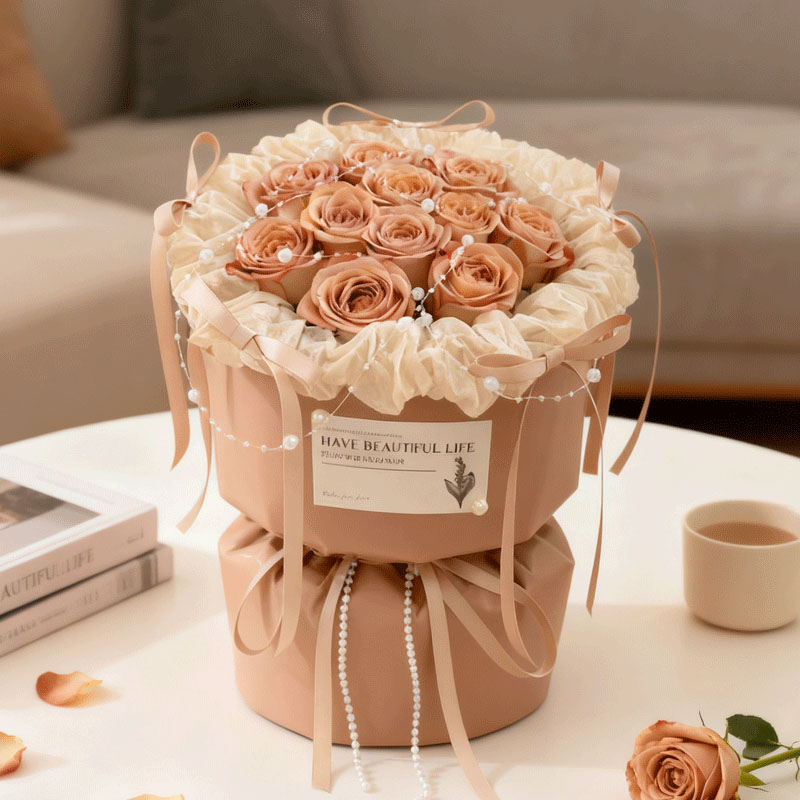 - 商品包装注:卡布奇诺为天然复古色,随季节和温度变化,颜色也会有差异,介意勿拍哦。【珍贵稀少花材,请提前预定。】