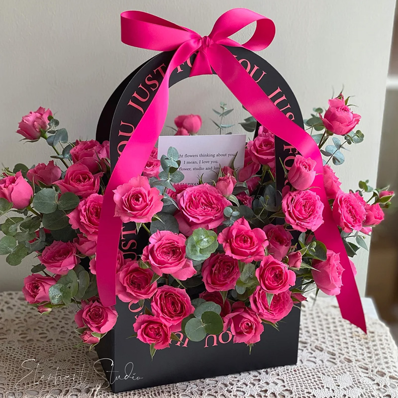 - 商品包装精美纸质手提花篮(花篮和配饰等具体以当地实物为准),珍贵稀少花材请提前预订或咨询客服。